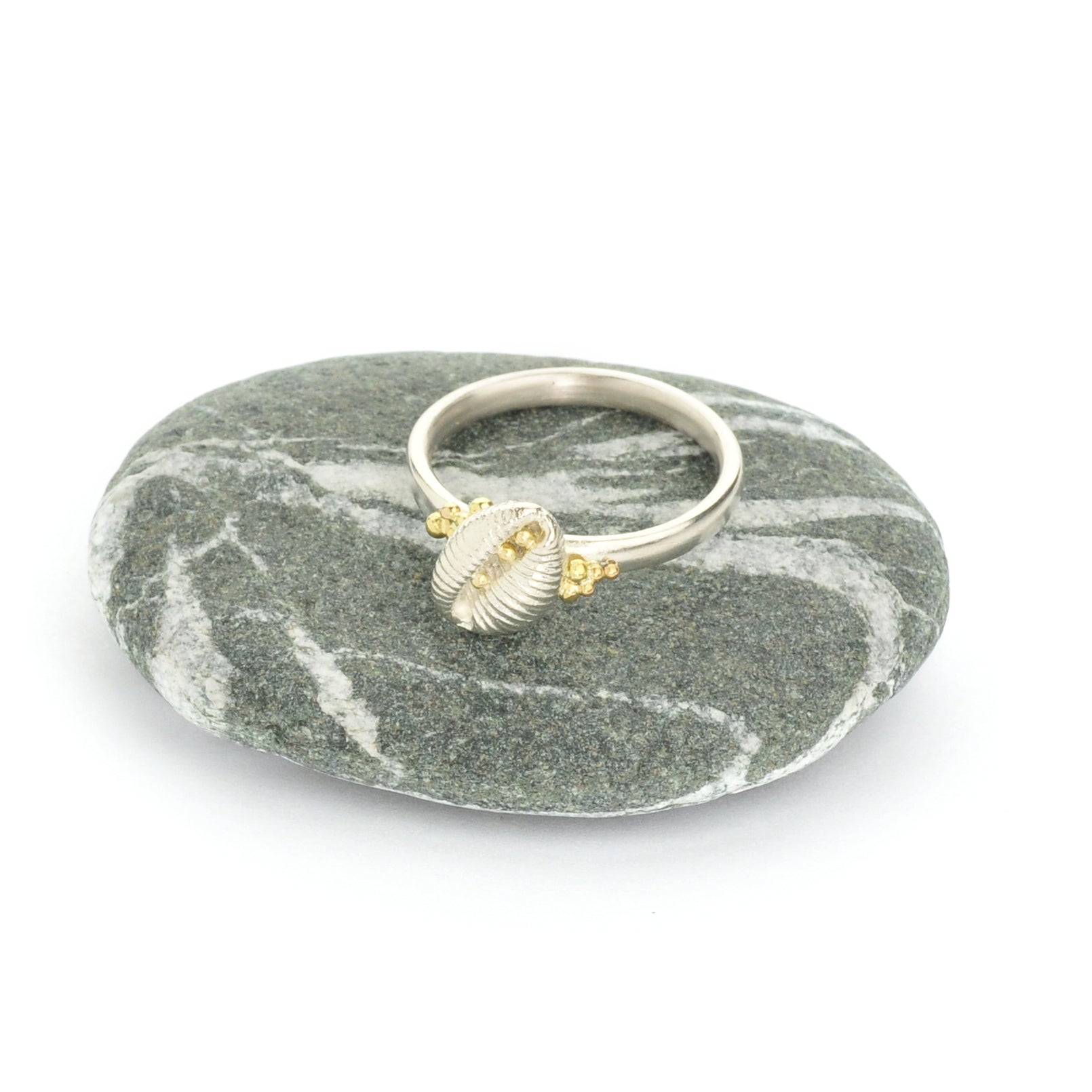 Cowrie Ring, Silver (with 18ct Gold grains)